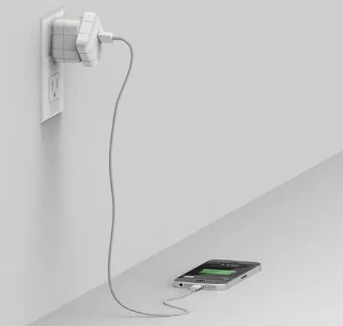 這款插頭類似一個魔方,表面分成9塊,每塊下面都有一個LED燈。給手機充電時,可通過LED燈來判斷充電進展:亮2個燈代表已充電10%,5個燈代表已充電50%,全亮則已充滿。而當它充滿時,魔方會45度旋轉,切斷電源,讓充電更安全。